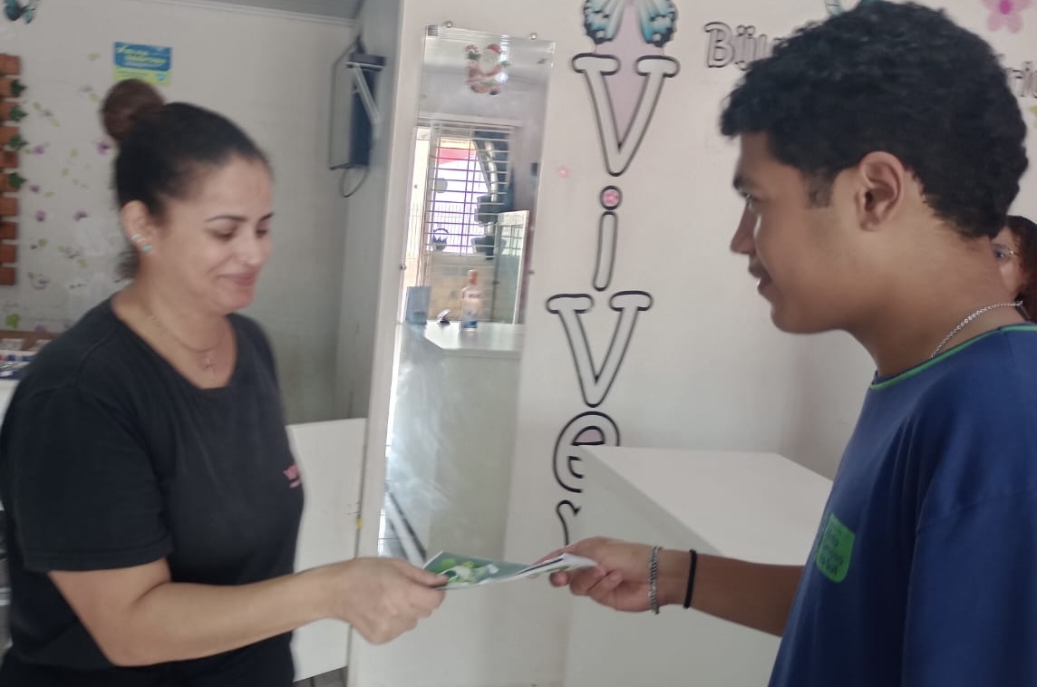 Nas imediações da escola, os alunos entregraram folders com explicações sobre os ODSs e objetivos específicos