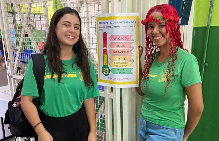 Estudantes e trabalhadores em educação, no momento do acolhimento, antes do começo da aula, foram convidados a refletir sobre suas emoções por intermédio de um Termômetro de Sentimentos