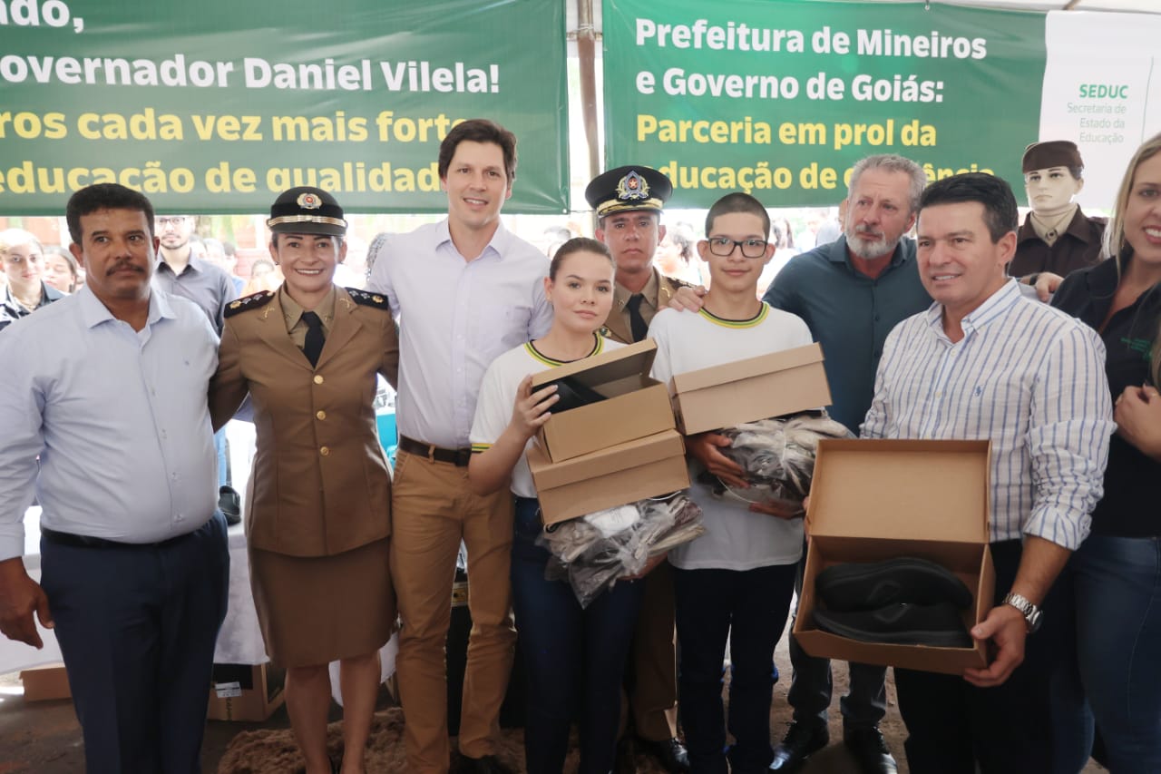 Início do primeiro semestre de 2023 foi marcado pela inauguração de um CEPMG em Mineiros e pela distribuição de uniformes e kits de material escolar nos dois municípios