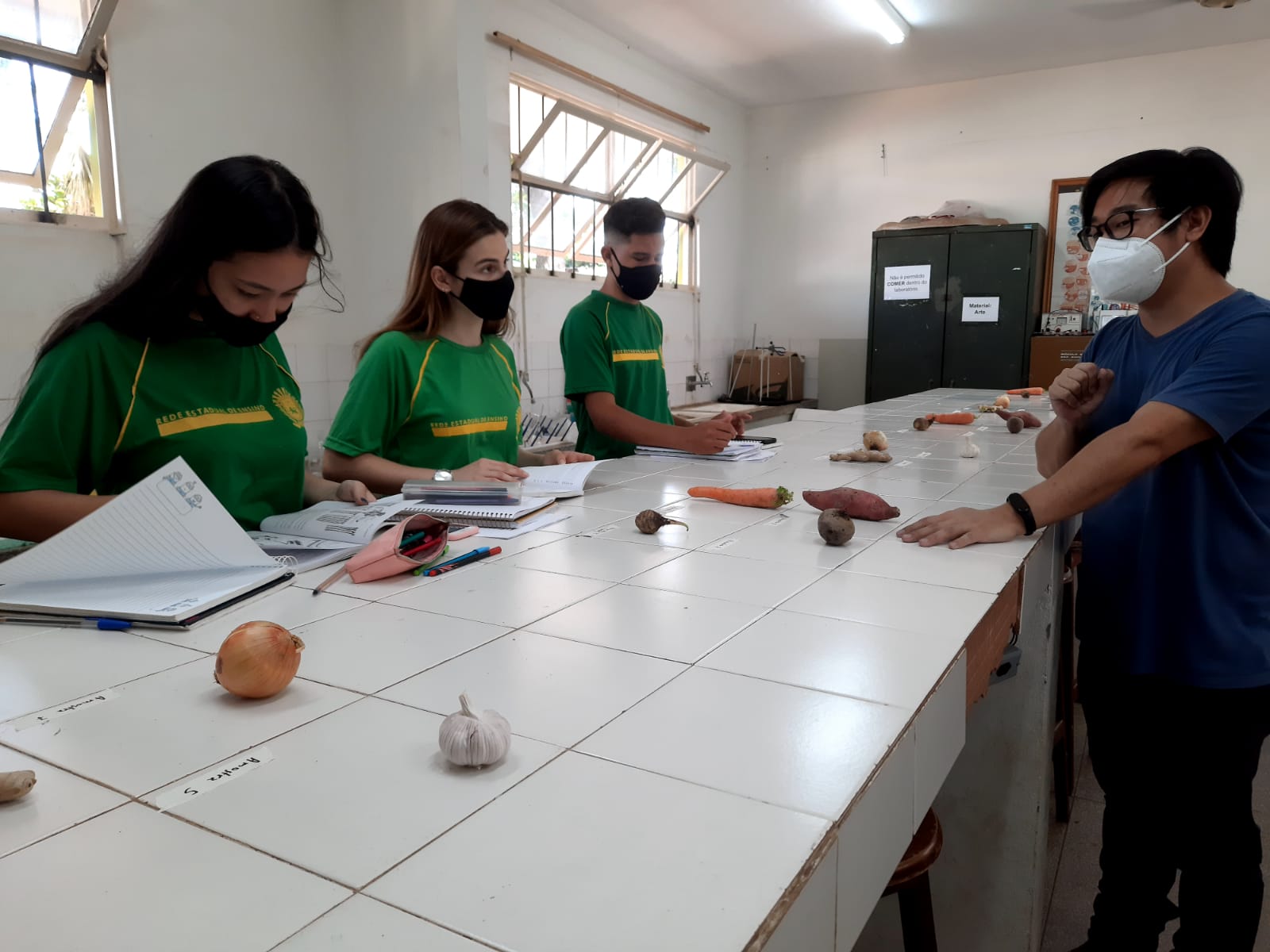 Foram realizadas aulas práticas em laboratório sobre Raízes e Caules com ênfase nas espécies comestíveis, nas aulas de Agroecologia (unidade curricular 3).