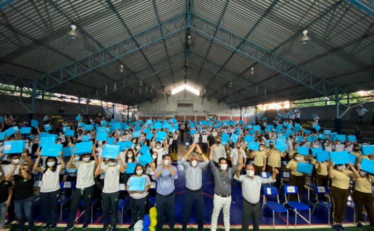 No Dia do Estudante, em Aparecida de Goiânia, Caiado inicia entrega de 60 mil computadores e inaugura obras de quatro unidades da rede estadual de ensino