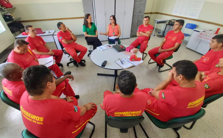 Responsáveis do NECIM e COPED estiveram reunidos com militares do corpo de bombeiros na unidade, na última quinta-feira.