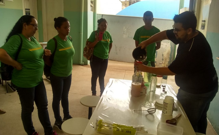 Materiais que, frequentemente, seriam descartados foram utilizados como proposta para a realização do projeto, entre eles produção de sabão.