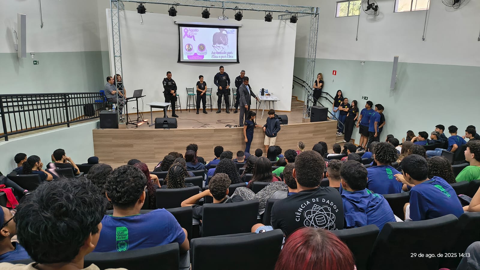 Estudantes de Corumbá realizam atividades do Agosto Lilás com rodas de conversa, palestras e participação da Patrulha Maria da Penha