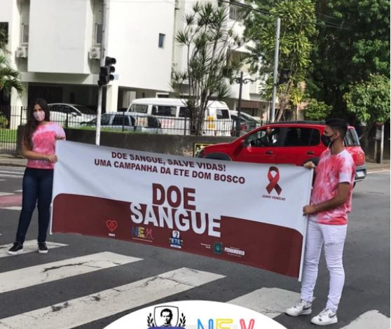 Com o tema central “Ganhe um Dia: doe sangue!”, os jovens usaram faixa de incentivo e distribuíram lacinhos vermelhos no sinal de trânsito