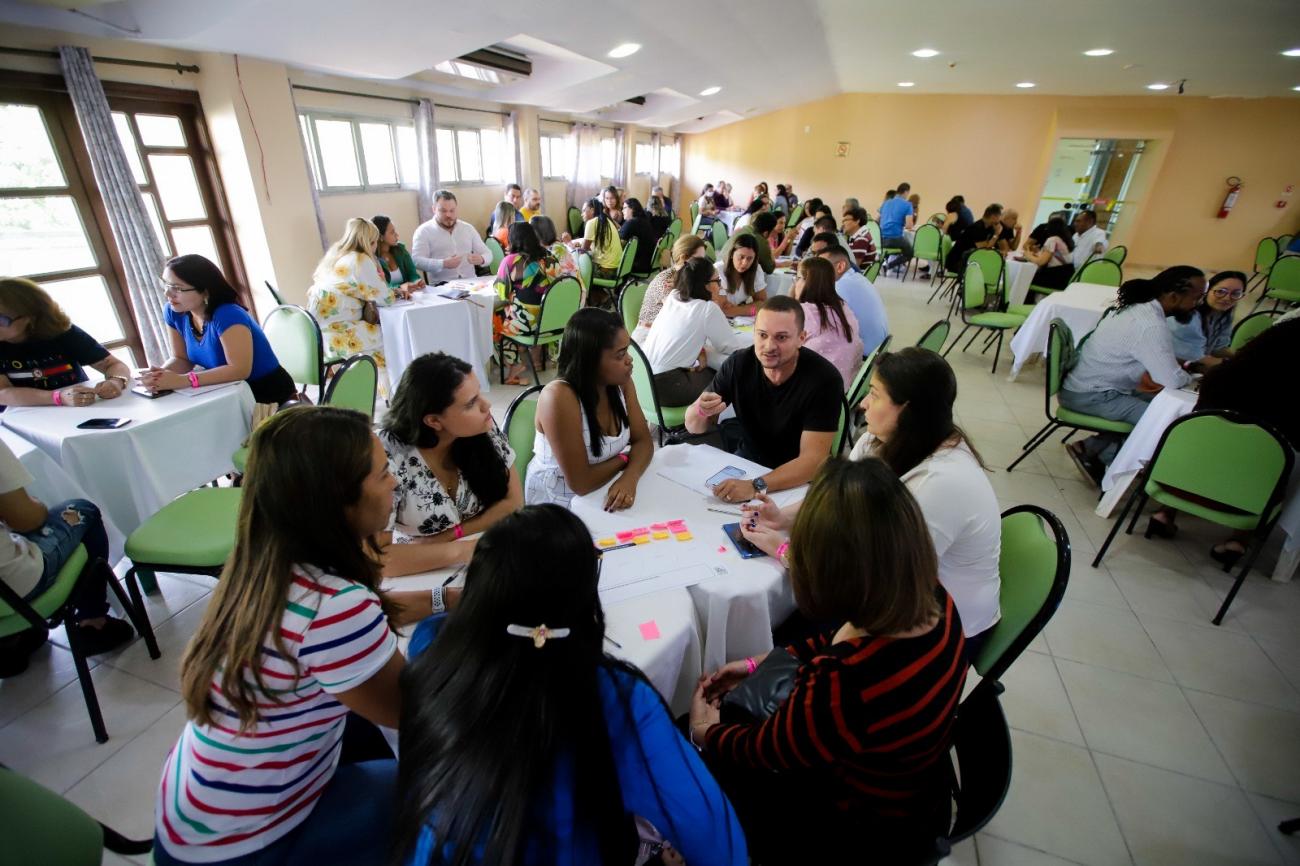 As discussões reúnem, presencialmente, mais de 300 agentes escolares, entre coordenadores distritais, gestores e pedagogos