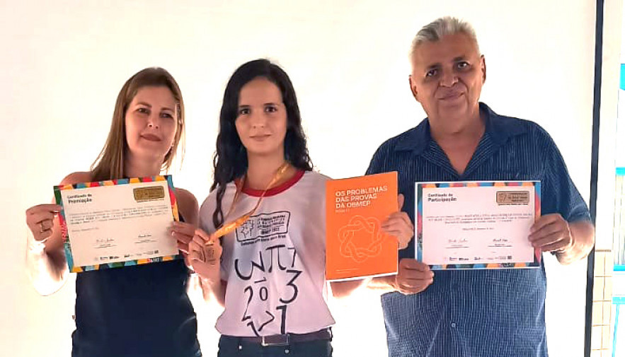 A estudante Luana Bonifácio Lucena recebeu a medalha de bronze e outros alunos receberam o certificado de Menção Honrosa