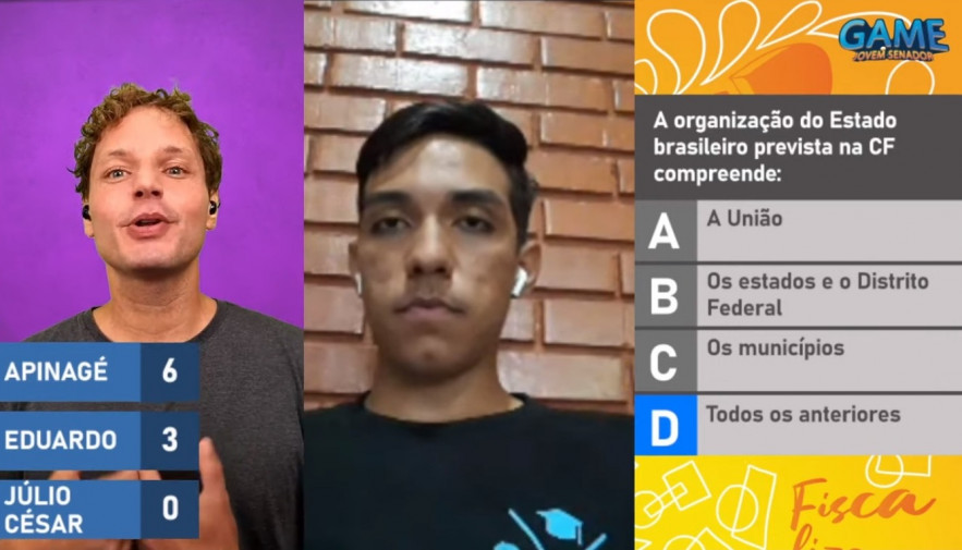 Estudantes de Palmas e Araguaína vencem o game promovido, no formato on-line, pelo Senado Federal