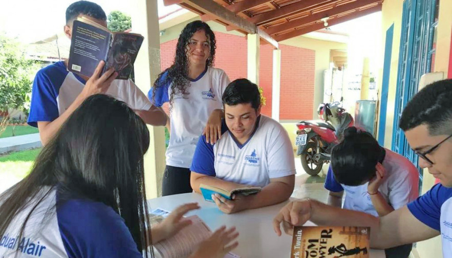 Os estudantes leem os livros e depois apresentam os comentários utilizando o teatro, a música, em rodas de conversas ou cafés literários