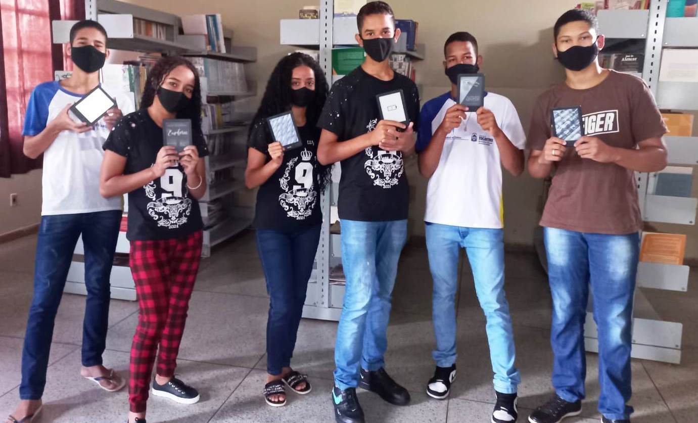 São os alunos cujos professores tiveram seus relatos de práticas classificados na semifinal da olimpíada. Eles estão recebendo leitores de textos, em suas casas.