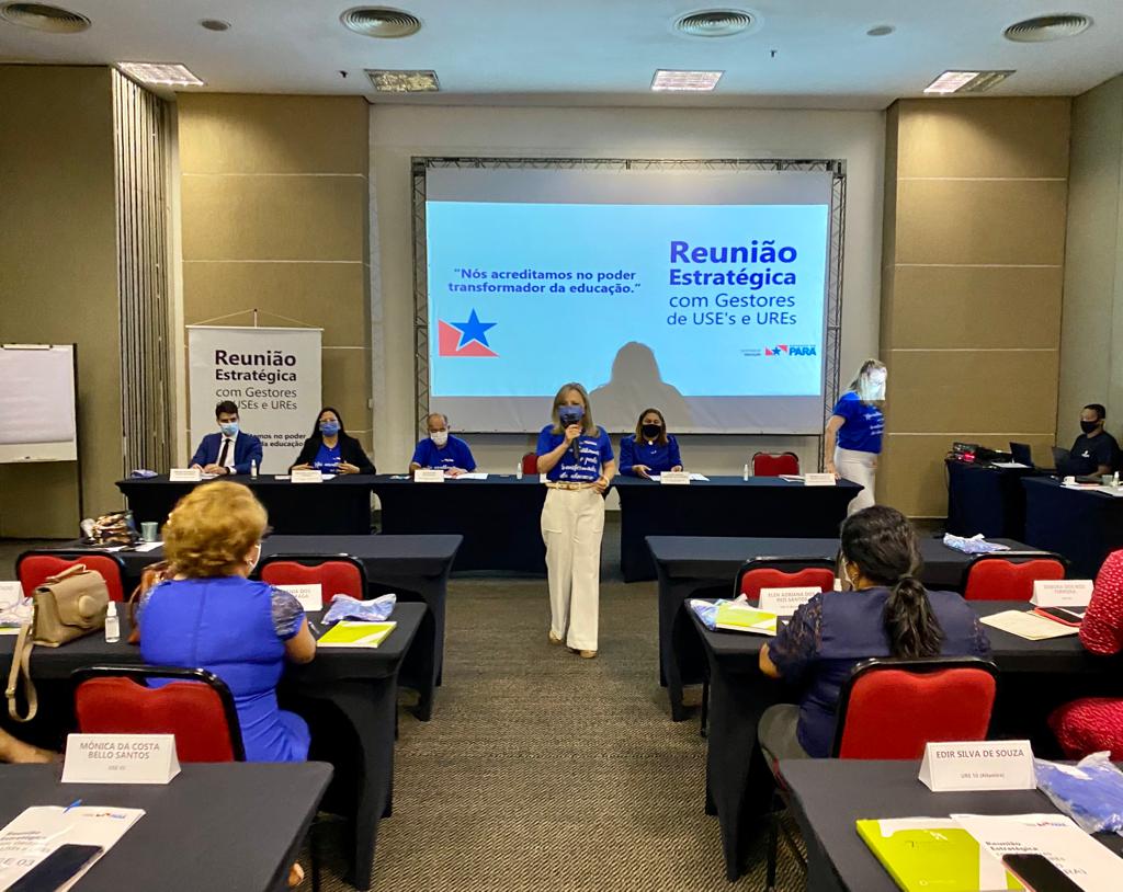 O encontro reuniu 37 coordenadores de USEs e UREs, secretários adjuntos e a secretária de Educação, Elieth Braga