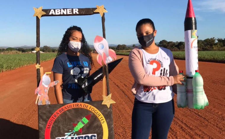 Os foguetes foram confeccionados pelos próprios estudantes com o uso de materiais recicláveis