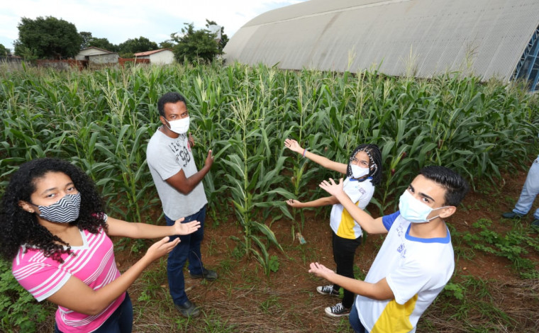 A escola está produzindo milhos, e a plantação se transformou num laboratório de aprendizagens e experimentos