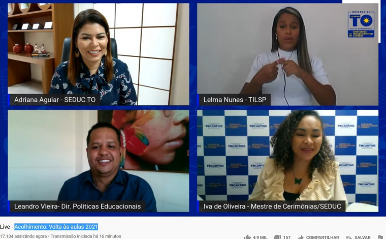 O evento on-line será transmitido por meio do canal do YouTube da Seduc – TV Seduc Tocantins