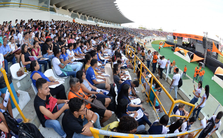 Cerca de 8 mil estudantes ocuparam as arquibancadas da Arena Batistão para uma partida de estudos e muita concentração