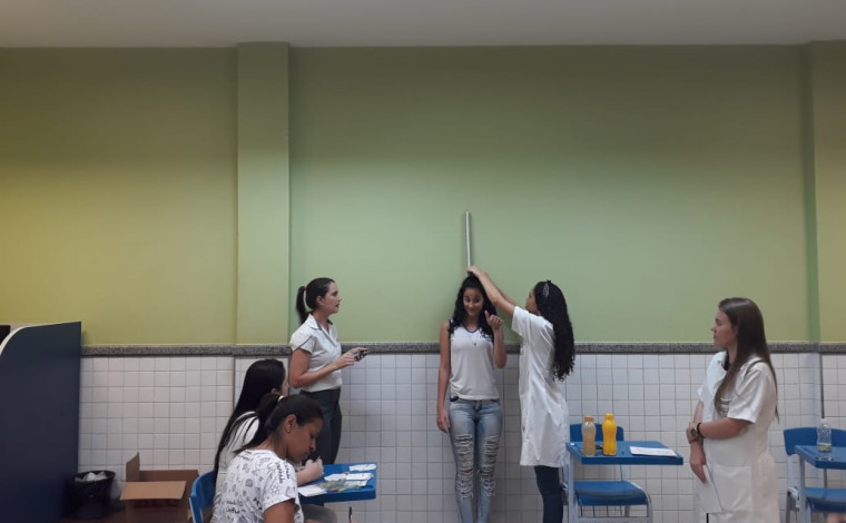 Pesagem, distribuição de alimentos saudáveis e cuidados com a saúde foram as atividades em escola de Muqui.
