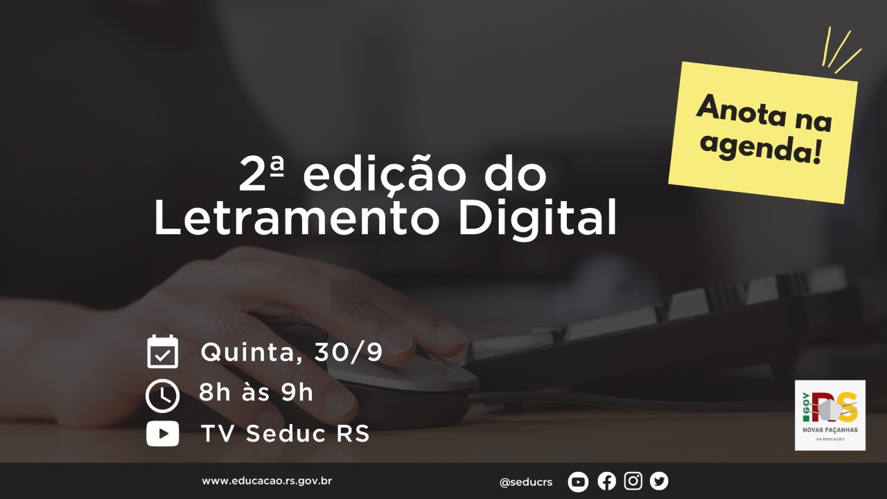 Transmissão será pelo canal do YouTube TV Seduc RS a partir das 10h