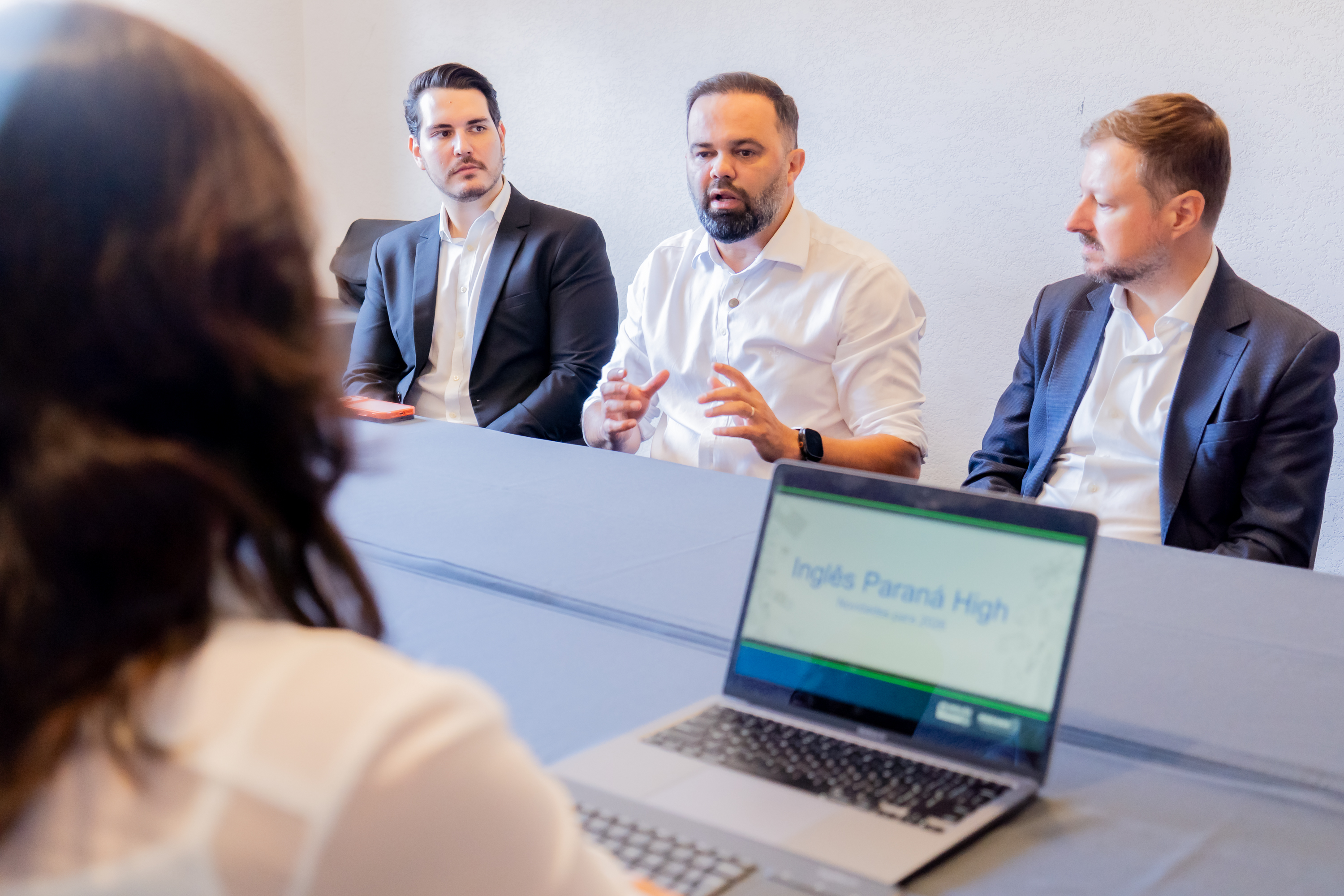 Os visitantes foram recebidos pelo secretário estadual da Educação, Roni Miranda, durante o 1º Seminário de Diretores de 2026, que acontece em Foz do Iguaçu, no Oeste do Estado