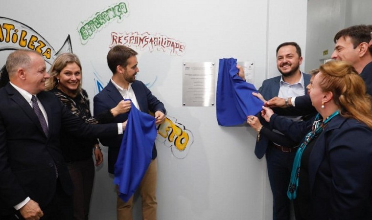 Governador Eduardo Leite, secretaria-adjunta da Educação, Ivana Flores, entre outras autoridades, estiveram na cerimônia