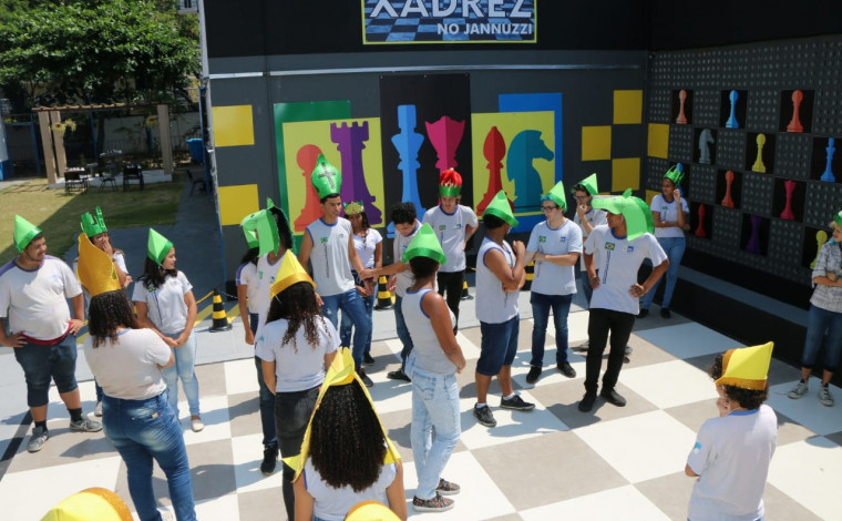 Já ouviu falar em “xadrez humano”? Com o objetivo de “entrar” e vivenciar o jogo, o Colégio Estadual Vicente Jannuzzi, na Barra da Tijuca, Zona Oeste do Rio de Janeiro, criou um tabuleiro gigante no pátio da escola, em que as peças são os próprios alunos e as jogadas são coordenadas por quatro estudantes, dois de cada time.
