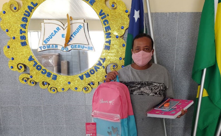 No Colégio Estadual Dom José Vicente Távora, em Tomar do Geru, o processo de entrega dos kits escolares já começou, e até o início das aulas, todos os 224 alunos receberão itens como mochila, caderno, lápis, caneta, borracha, agenda, régua e transferidor.