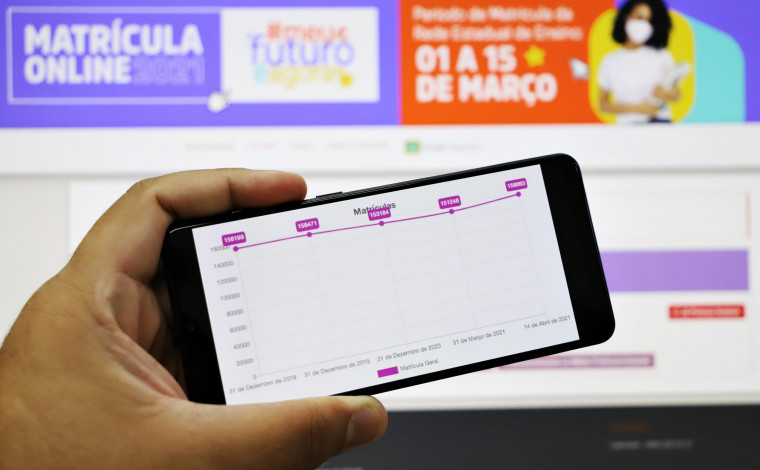 A rede pública estadual de ensino vem apresentando um dado significativamente positivo no quesito matrícula de alunos. Em maio de 2021, a rede estadual figura com 160.598 alunos matriculados, um número maior que o apresentado durante o ano 2020, quando a quantidade de alunos pontuou 153.187 matriculados. Esses números tendem a crescer por conta da busca ativa escolar e por disponibilizar o portal da matrícula aberto ao longo de todo o ano.