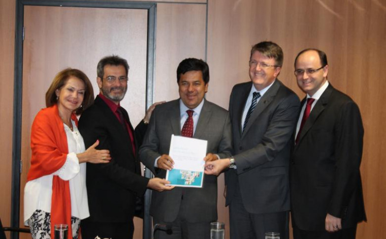 O presidente do Conselho Nacional de Secretários de Educação (Consed) e secretário de Estado da Educação de SC, Eduardo Deschamps, e o presidente da Undime e Dirigente Municipal de Educação de Tabuleiro do Norte/ CE, Alessio Costa Lima, entregaram ao Ministro da Educação, Mendonça Filho, e aos secretários do ministério, o relatório com as sugestões de melhoria do texto da segunda versão da Base Nacional Comum Curricular. O documento foi elaborado a partir das contribuições de mais de 9 mil professores, gestores, especialistas e entidades de educação que participaram dos seminários realizados entre junho e agosto em todos os estados brasileiros.