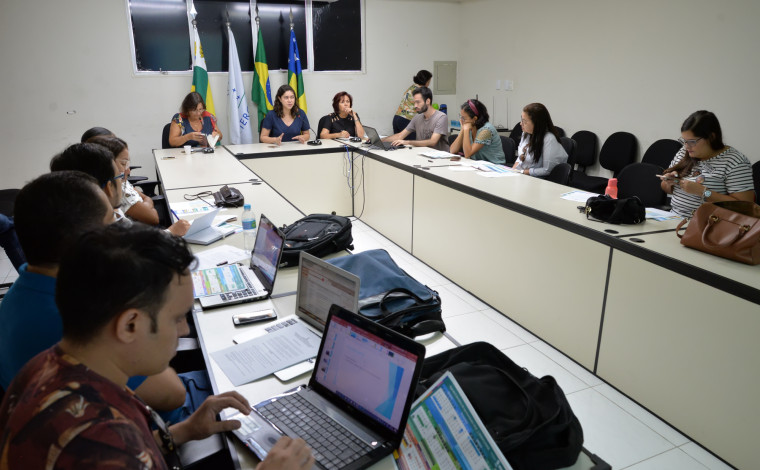 Na manhã desta segunda-feira, 3, foi realizado na sala de reuniões da Seduc um encontro preparatório para o Workshop, momento em que os 13 professores que participarão se reuniram com a equipe do Seads para definir todos os detalhes do evento. O encontro contou com a presença da coordenadora do Seads, Danielle Virginie Santos Marinho, e das técnicas Nádia Cardoso, Célia Gil e Bernadete Carneiro.
