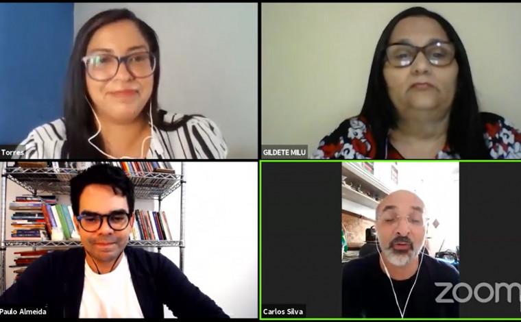 A professora Gildete Milú, diretora da UTECE, relata que no início da pandemia a Seduc iniciou a preparação dos coordenadores das Gerências Regionais para replicarem as formações para as escolas, criando o Canal de Formação no Chão da Escola.