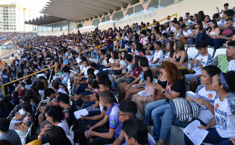 A Secretaria de Estado da Educação, do Esporte e da Cultura (Seduc) iniciou na tarde desta sexta-feira, 1, na Arena Batistão, em Aracaju, o primeiro dia da maior revisão gratuita para o Exame Nacional do Ensino Médio (Enem) já realizada no Brasil. Cerca de 8 mil estudantes ocuparam as arquibancadas para uma partida de estudos e muita concentração. Nesta sexta-feira, 8, a revisão se repetirá.